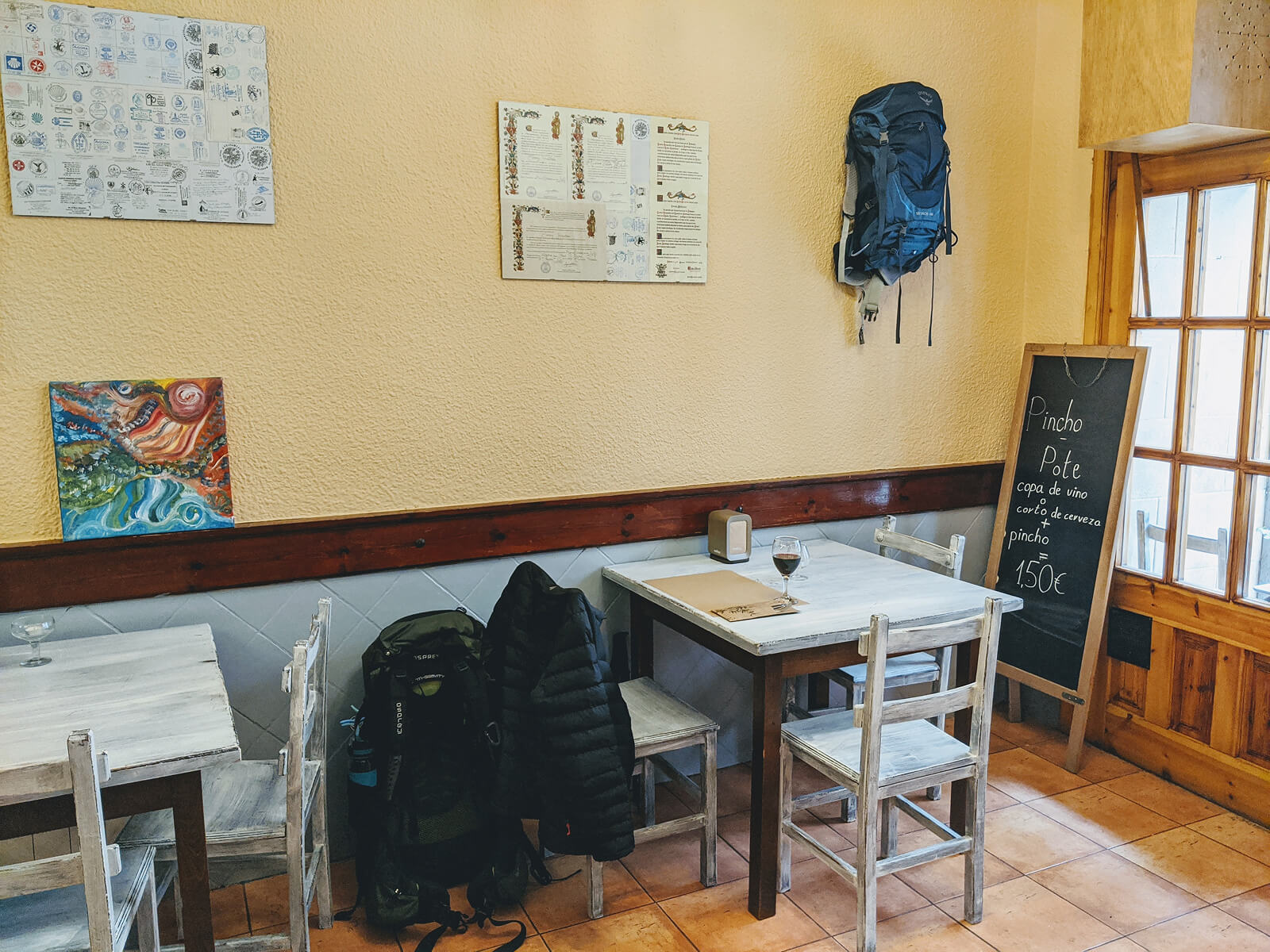 這兩晚的住宿都有獨立房間。今天算是住在一間小旅館,雖然價格稍高,但因為多走了三個城鎮,幾間 Albergue 都沒開,也只能如此。其實一晚 25 歐元,依舊比在台灣便宜。真正讓我驚喜的,是晚餐。