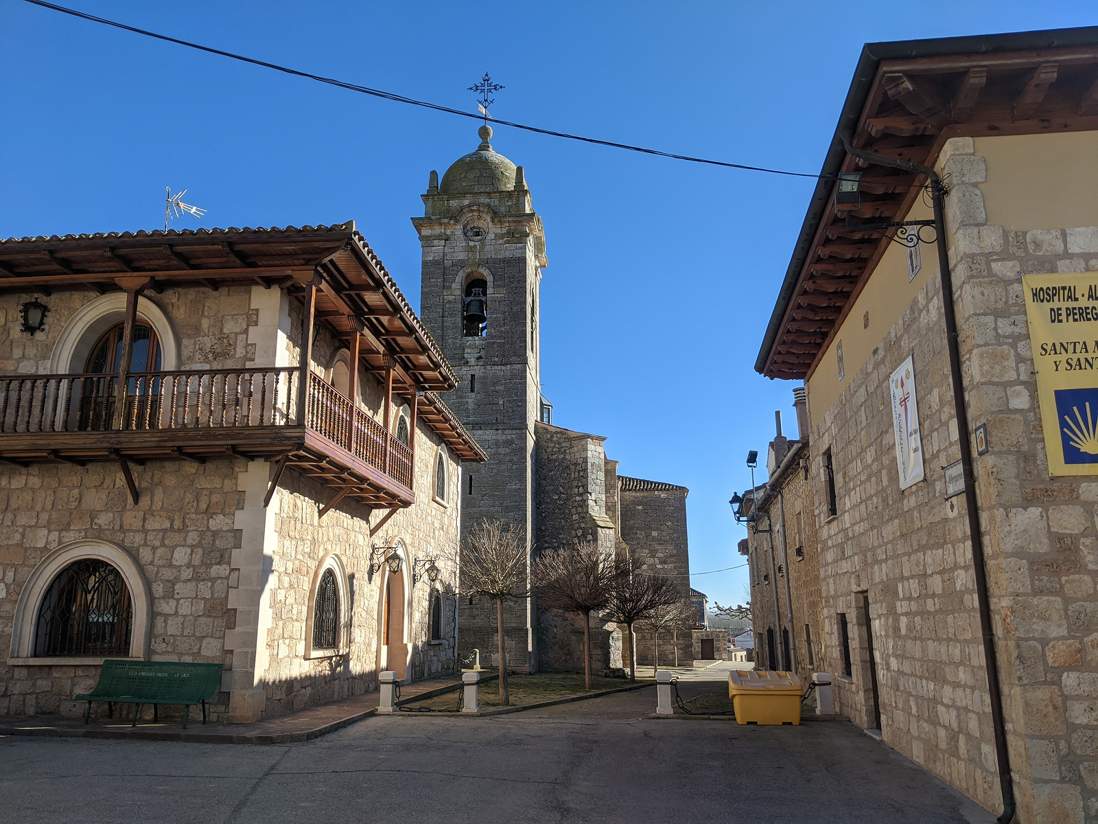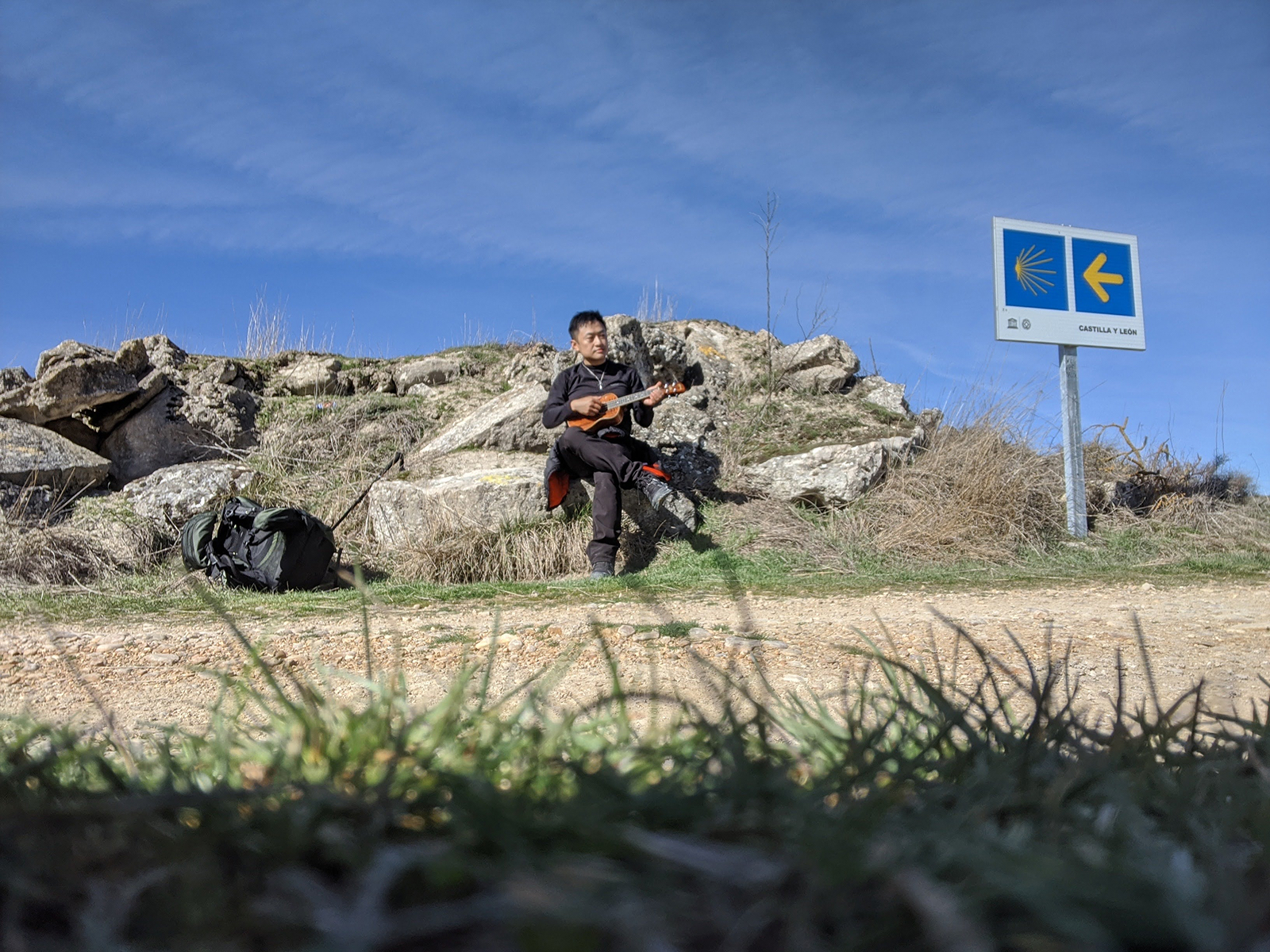 與前天截然不同,今天的天氣好得不可思議。陽光溫暖,天空乾淨得沒有一絲雲。走在路上,步伐變得輕盈許多。雖然沒有再遇到動物與葡萄園,但遼闊的大草原、潺潺溪流,再次構成屬於卡米諾的大自然交響曲。小鳥也準時登場,替這段路添了幾分生氣。